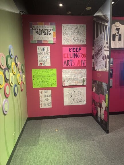 One section is dedicated to children’s posters promoting government spending and political activism. There are posters celebrating teachers’ unions, demanding increased pay for teachers that state, “No funds, no arts, no future.” One poster implores D.C.’s high school students to skip school — something Dunbar’s students might not need much persuading to do — for a “walkout” to “show the D.C. city council” that “funding matters!!!”
