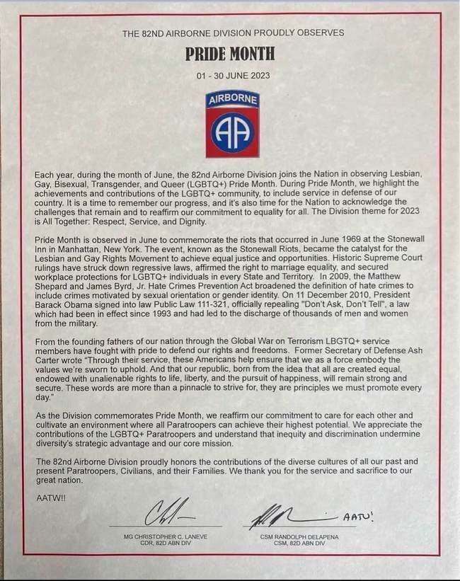 The letter went on to parrot the prevalent themes from critical theory, calling on all members of the famed 82nd Airborne Division to advance the cause of social justice as a “strategic advantage.”