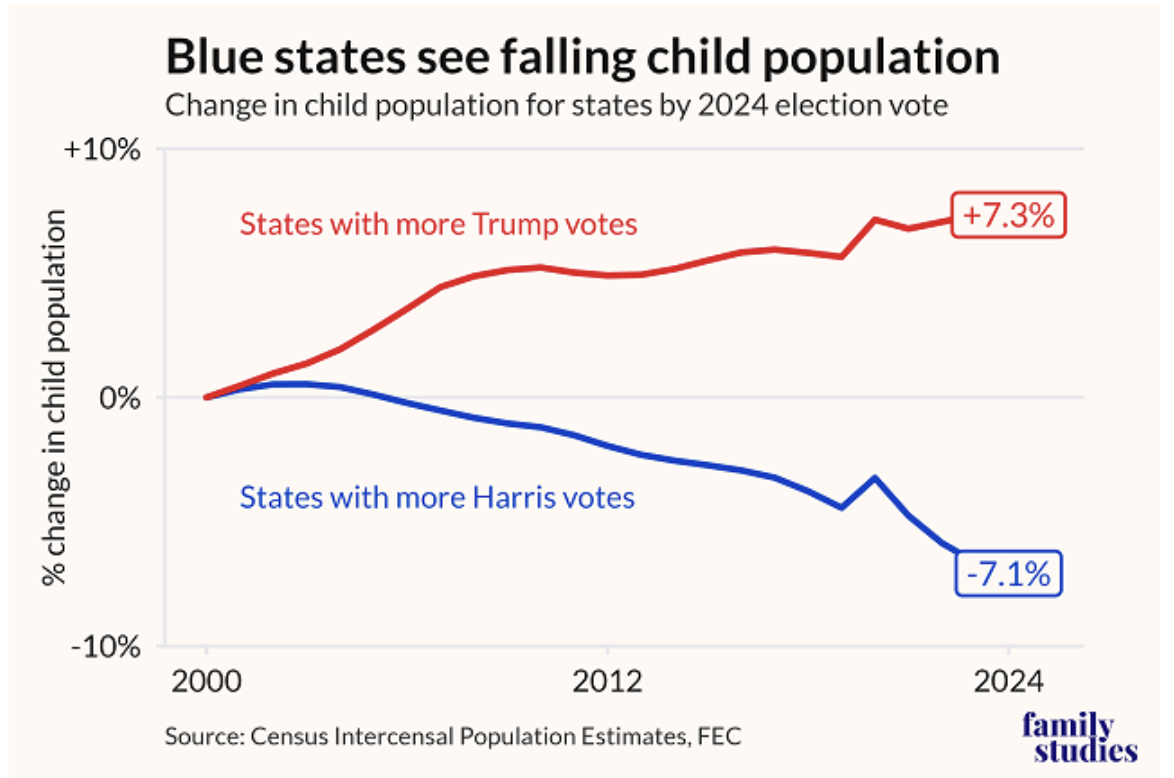 Conservatives are now getting married and having children at substantially higher rates than liberals, and the gap is growing. Today, a liberal woman is about 27% less likely to be married than a conservative woman.