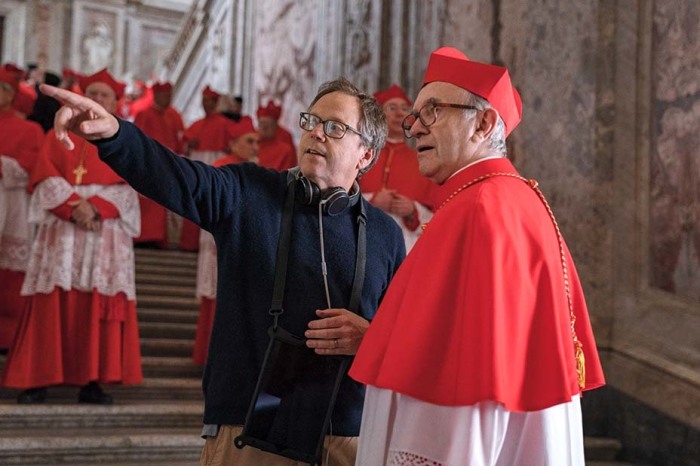 “The Two Popes” stars Anthony Hopkins (“The Silence of the Lambs”) as the retiring Pope Benedict XVI Jonathan Pryce  (“Brazil,” “Carrington”), as the new Pope Francis. | Netflix