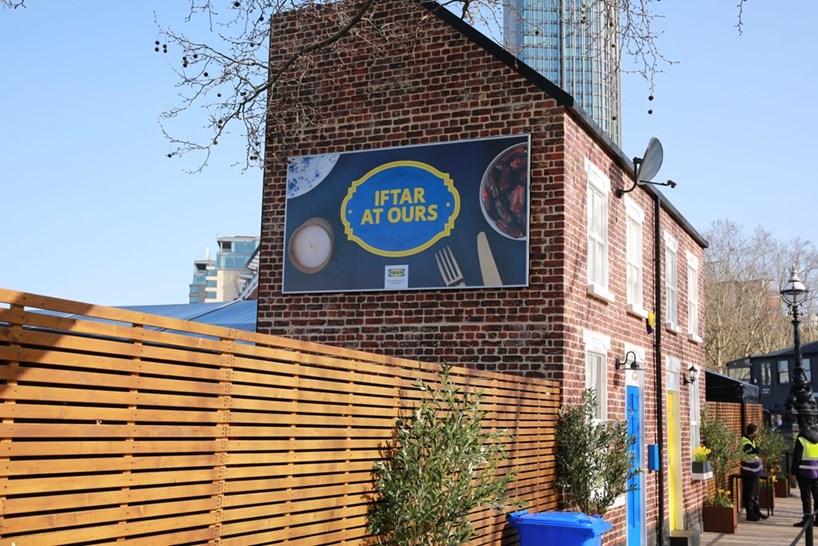 AlamyAn installation on a house at Observation Point, on the South Bank in London, with blue and yellow doors, part of IKEA’s “Iftar At Ours” initiative during Ramadan