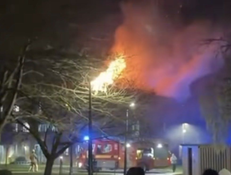Footage posted to social media shows huge orange flames coming from the building as students looked on.