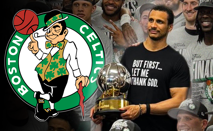 In 2024, after his team won the franchise’s record 18th championship, Mazzulla put on a t-shirt for postgame interviews that read, “But first … let me thank God.”