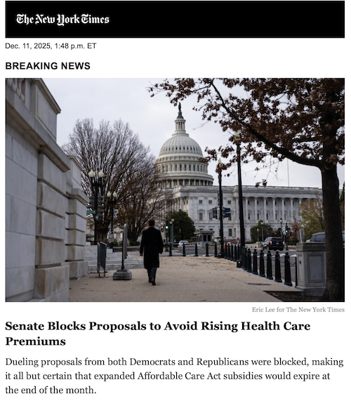 The paper’s framing is typical: “Senate blocks proposals to avoid rising health care premiums.” What the Senate actually did was, it declined to extend Obamacare subsidies. The “Affordable Care Act” was a disaster, and Congress should stop bailing it out. The ACA made health care less affordable by banning cheap health insurance. Ideally, it should be repealed altogether.