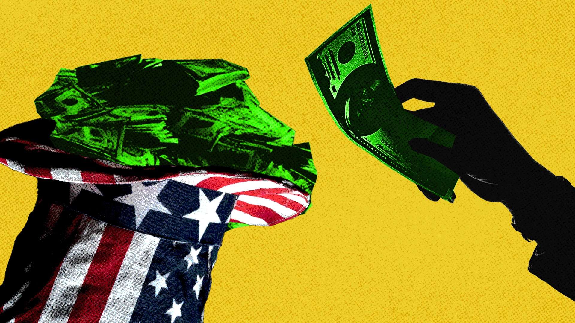 A hand pulls cash from a U.S. flag hat full of money. | Illustration: Adani Samat