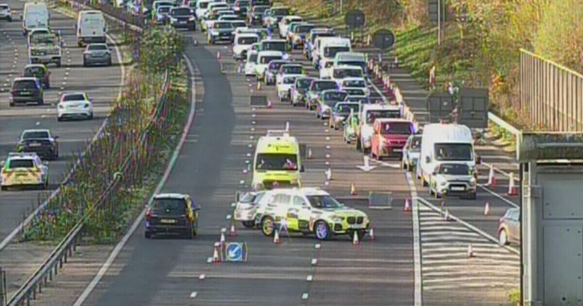 Massive queues are building up on the motorway on Thursday, April 2 with emergency services present at the scene.