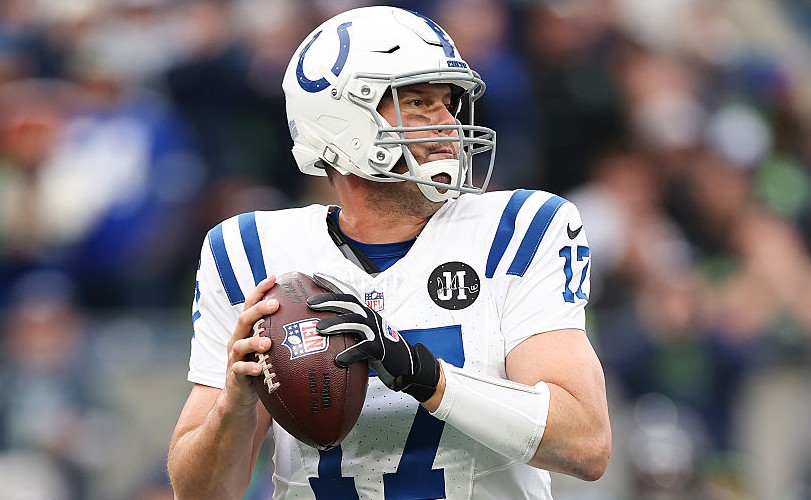 With 1:37 left in the first half, the devout Catholic veteran quarterback took a snap at the Seattle Seahawks’ 8-yard line and hit slanting wide receiver Josh Downs at the 3 before he galloped into the end zone.