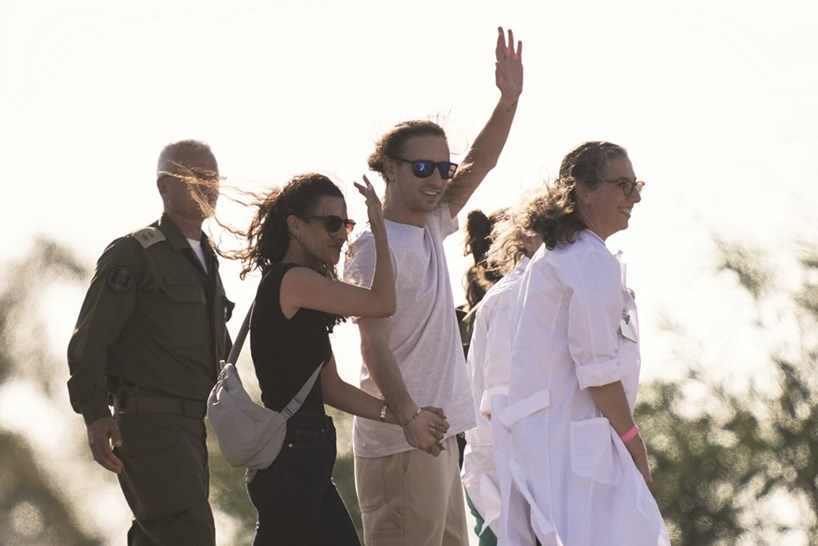 Daniel, waves to the crowds on his release, at the Sheba Medical Center,