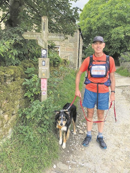 Diocese of SouthwarkThe Bishop of Kingston and his border collie, Jem, on the Pennine Way, which they ran for charity in August