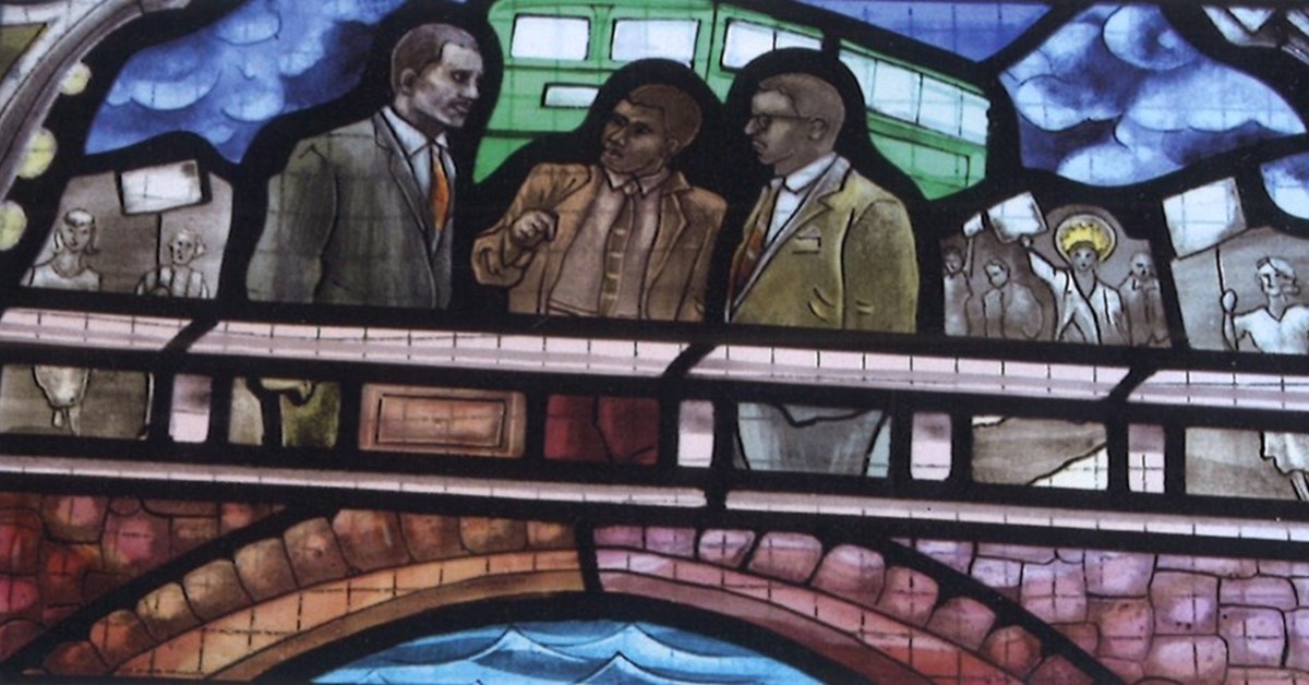 Part of Ealish Swift’s recent stained glass featuring a non-white Jesus and replacing the Colston window (in memory of a slave trader) in St Mary Redcliffe, Bristol: this portion shows leaders of the 1963 Bristol bus boycott. The photo is one of Trevor Naylor’s many specially taken for Maurice Fells’s guide Churches of Bristol (Amberley, £15.99 (£14.40); 978-1-3981-2231-4), in a popular series