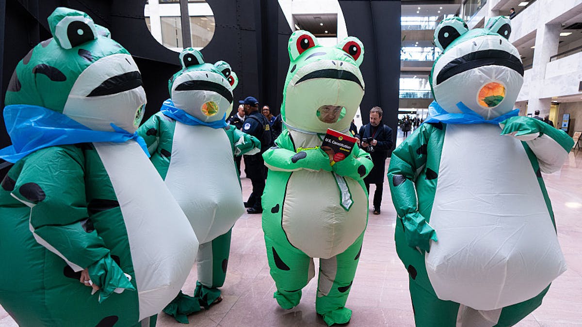 While House Minority Leader Hakeem Jeffries (D-NY) has tried to frame this circus as “silent defiance,” the visual reality was anything but silent — or dignified. The room was filled with “frog-themed swag,” a nod to the “Portland Frog Brigade,” because apparently, the Left has reached the stage of grief where they simply identify as pond life.