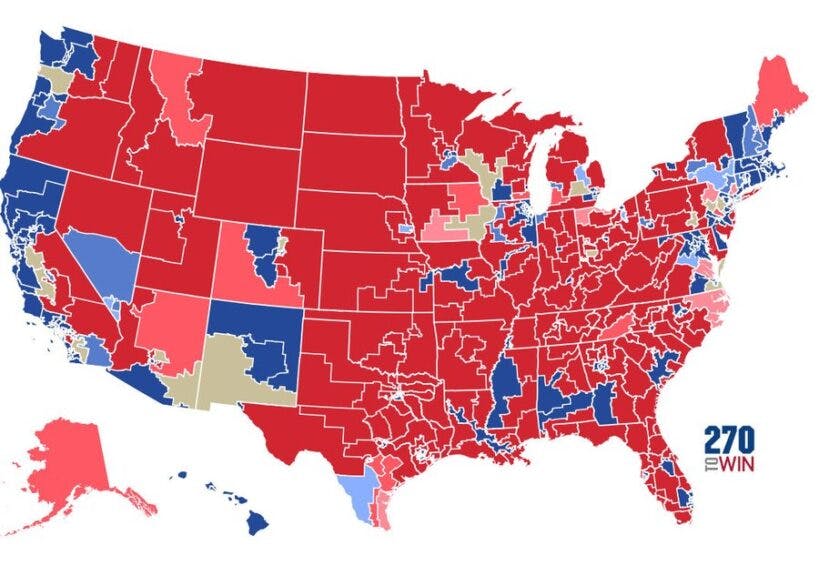 And if you look at the latest map from the Cook Political Report, you’ll see there are around 210 safe Republican seats, 208 safe Democrat seats, and 17 tossups.