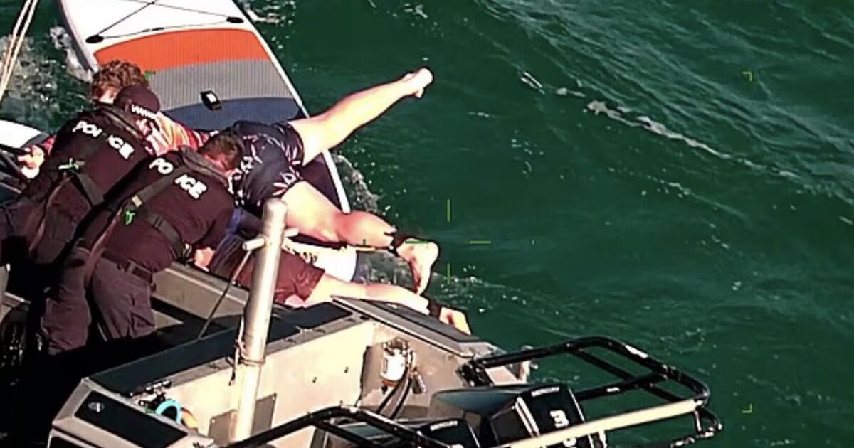 According to footage shared by the Victoria Police, the pair was lying flat on their paddleboards and waving for help when emergency services spotted them.