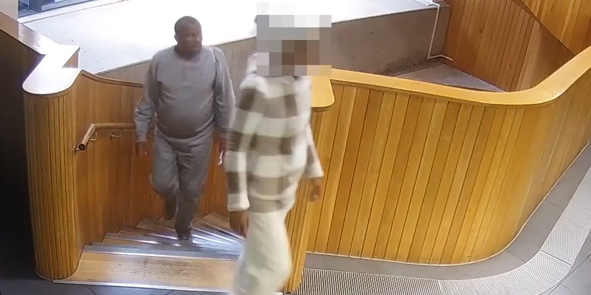 In the nine-second-long clip, Kebatu can be seen walking up a flight of stairs behind a woman.