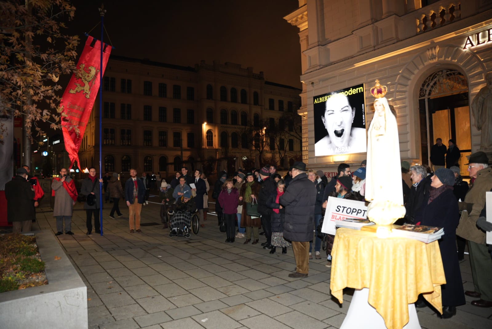 Several chapters of the TFP (Tradition, Family and Property) from around the world gathered in Vienna to hold a Rosary rally in front of the Künstlerhaus as an act of public reparation.