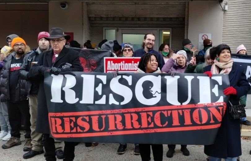 The December 5 protest was organized by “Rescue Resurrection”, a pro-life movement planning “rescue” actions across the country.