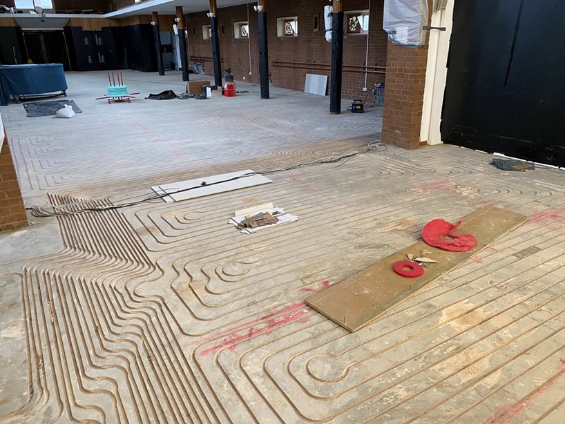 St Boniface’s, WhiptonChannels of pipe work for the underfloor heating are installed