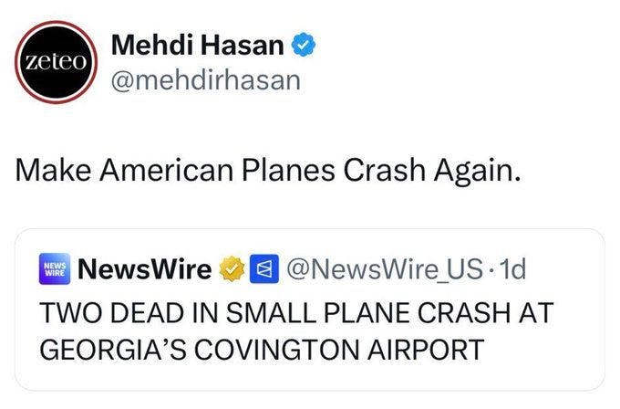 He also celebrated a plane crash in Georgia, saying, “Make American Planes Crash Again.”