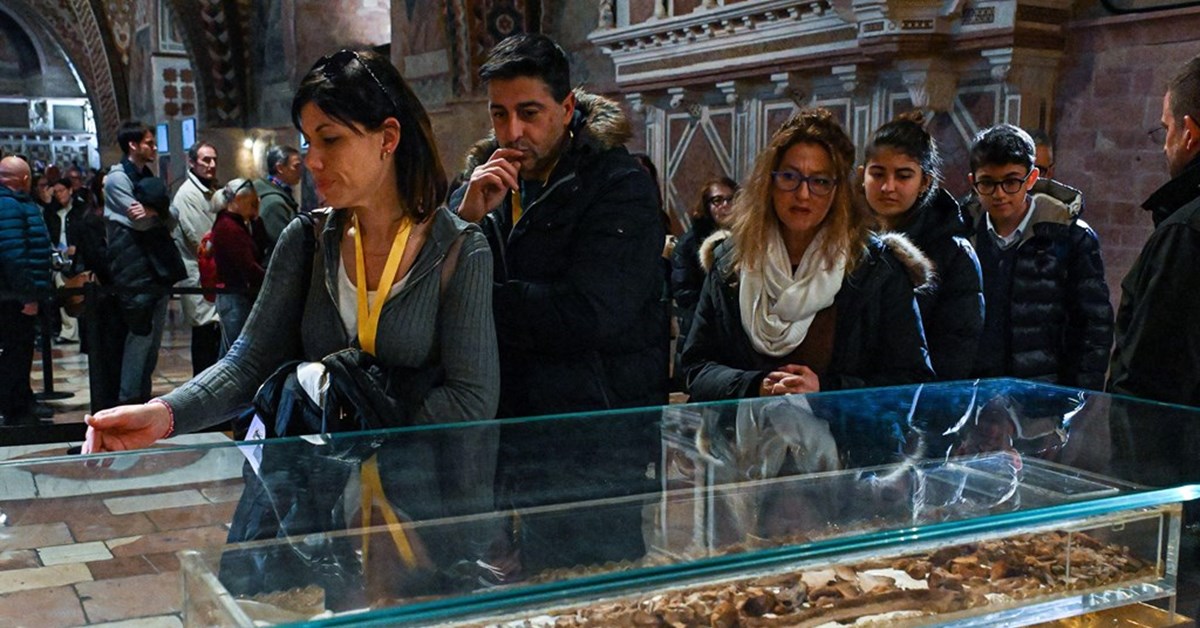 The bones of St Francis of Assisi are on display in the town’s Lower Basilica to mark the eighth centenary of his death. More than half a million people have so far viewed them in their bulletproof Plexiglass reliquary. They are on display for veneration until the end of March.