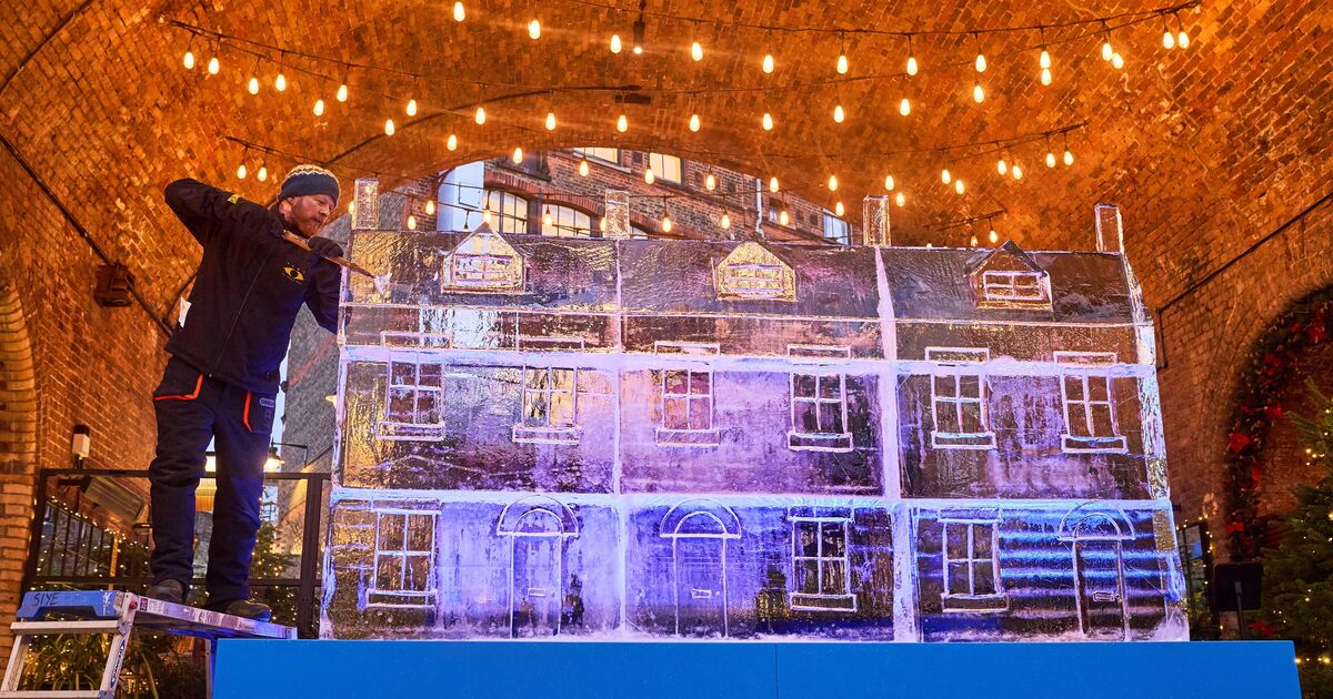 An ice sculpture of classic two-up, two-down terraced homes has been unveiled – shining a spotlight on the millions of people living in fuel poverty across the UK. At three metres wide and one and a half metres tall, the installation symbolises households left ‘frozen’ by rising energy costs.