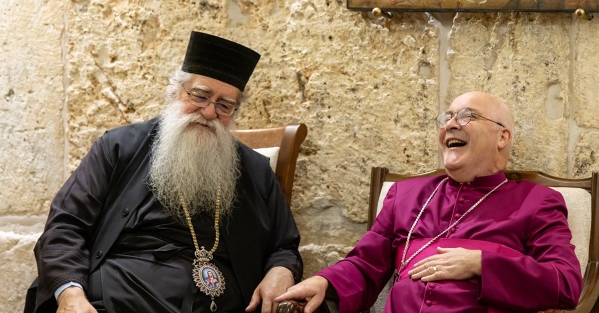 He walked to the church from the headquarters of the Greek Orthodox Patriarchate, where the Patriarch, Theophilos III, had hosted a meeting of the Heads of Churches to welcome Archbishop Cottrell and his wife, Rebecca, and to thank them for their visit.
