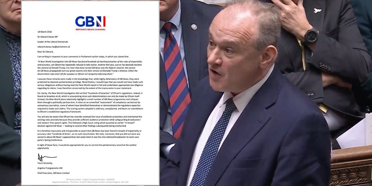 GB News CEO Angelos Frangopoulos has written an open letter to Liberal Democrat leader Sir Ed Davey.