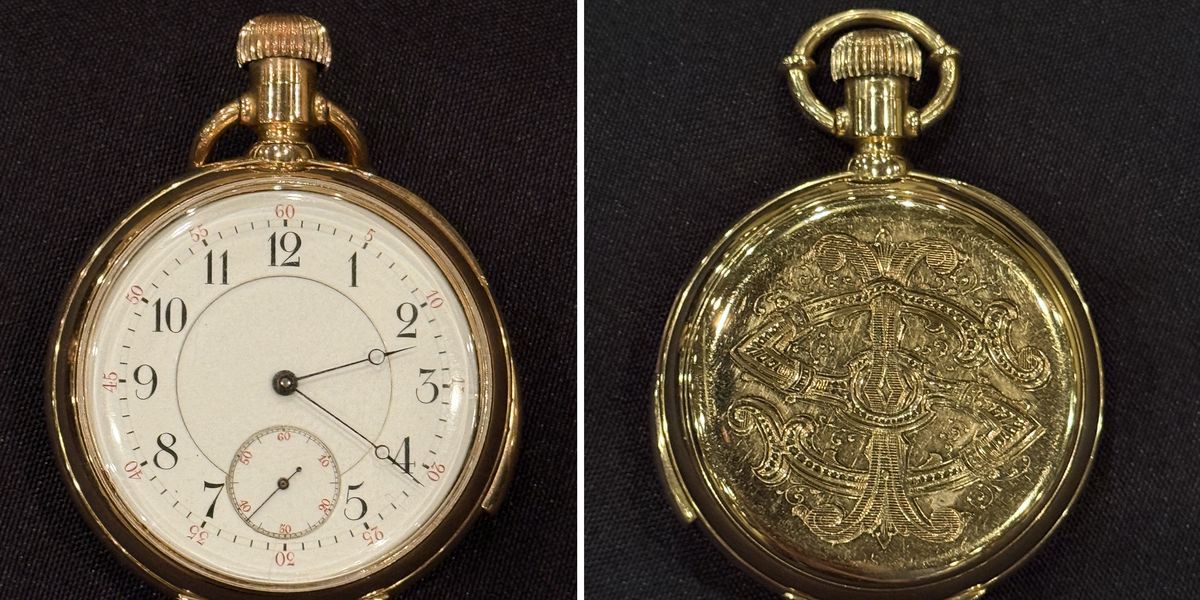 The gold pocket watch recovered from the couple has sold for almost £2million