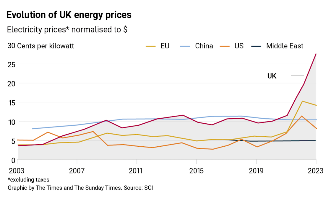 Britain is committing a “national act of self-harm” through its high energy prices and risks losing its few remaining electricity-hungry industries, the chief executive of the Society of Chemical Industry has warned.