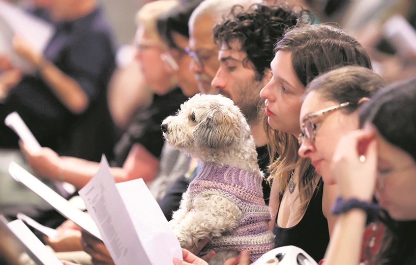 “No cats, just a catechism” (Chris Coupe); “We only come to this healing service because she can’t afford the vets’ bill” (Robin Eastoe); “The Church of England is going to the dogs” (Patrick Irwin); “I’m sorry, Tiddles. I know you’re keen, but I’m afraid you’re not eligible to join the PCC” (Richard Hough); “Fluffles was glad that the small creatures were still mentioned in the creation hymn” (Philip Lickley); “He was very excited when he heard that evensong that week was going to include Howells and Bach” (Tim Popple); “He always likes to join in, but his Bach is worse than his Lyte” (Julian Ashton); “The dog pretends not to hear yet another joke about Bach” (Michael Doe); “Apparently, to be a good chorister, all he needed was a Ruff” (Mary Hawkins); “Waiting for the Bishop to throw her crook” (John Appleby); “The choir’s new tenor is a bit of a bark, but great pitch” (Chloë Fraser); “Look! Is he wearing my dog collar?” (Jo Mash); “We need more than crumbs, you know” (Philip Goggin); “Those who have ears to hear, let them hear” (Barbara Huntley); “Don’t worry, Fido: the Archdeacon isn’t really a Rottweiler” (John Saxbee).