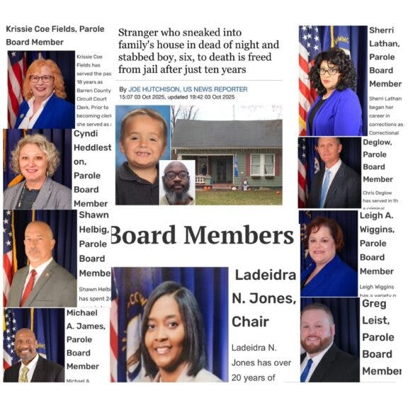 When the parole board in Kentucky reviewed this case a few weeks ago, they had all of this information. They knew that Exantus was taking drugs. They knew that, according to the state’s experts, those drugs contributed to this murder. They knew that no one could possibly ensure the safety of the public if he were released from prison. And most importantly, they knew that Exantus murdered a child in cold blood. And they let him out of prison anyway. They released him from prison for “good behavior.” I would think that stabbing a child is the kind of bad behavior that would, at an absolute minimum, keep you locked in prison until you die. But instead, because he managed to sit like a good little boy in his jail cell without getting into too many fights or whatever, they are going to reward him by releasing him from prison. Here are the members of Kentucky’s parole board, who made that decision.