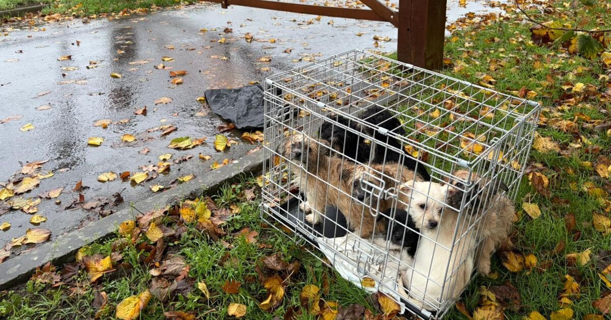 Heartbreak as seven puppies cruelly abandoned in a cage during UK storm | UK | News