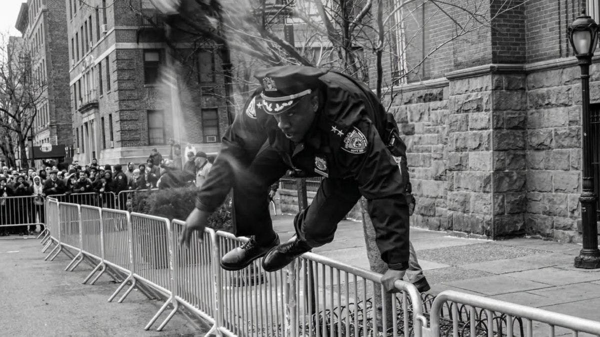A photo of Edwards leaping over a fence to chase after Balat quickly went viral and was shared online by the New York City Police Department.