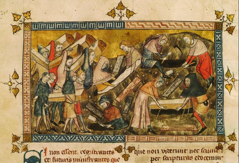 The people of Tournai burying victims of the Black Death, 1349; from a chronicle by Gilles Li Muisis (c.1272-1352)