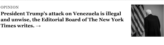 As for “unwise,” time will tell. It will certainly turn out to be wise for the people of Venezuela. I am pretty sure it will be wise for us, too, but let’s see how events unfold. The New York Times Editorial Board, of course, has no more insight than the rest of us as to how the future will go. Less, in fact.