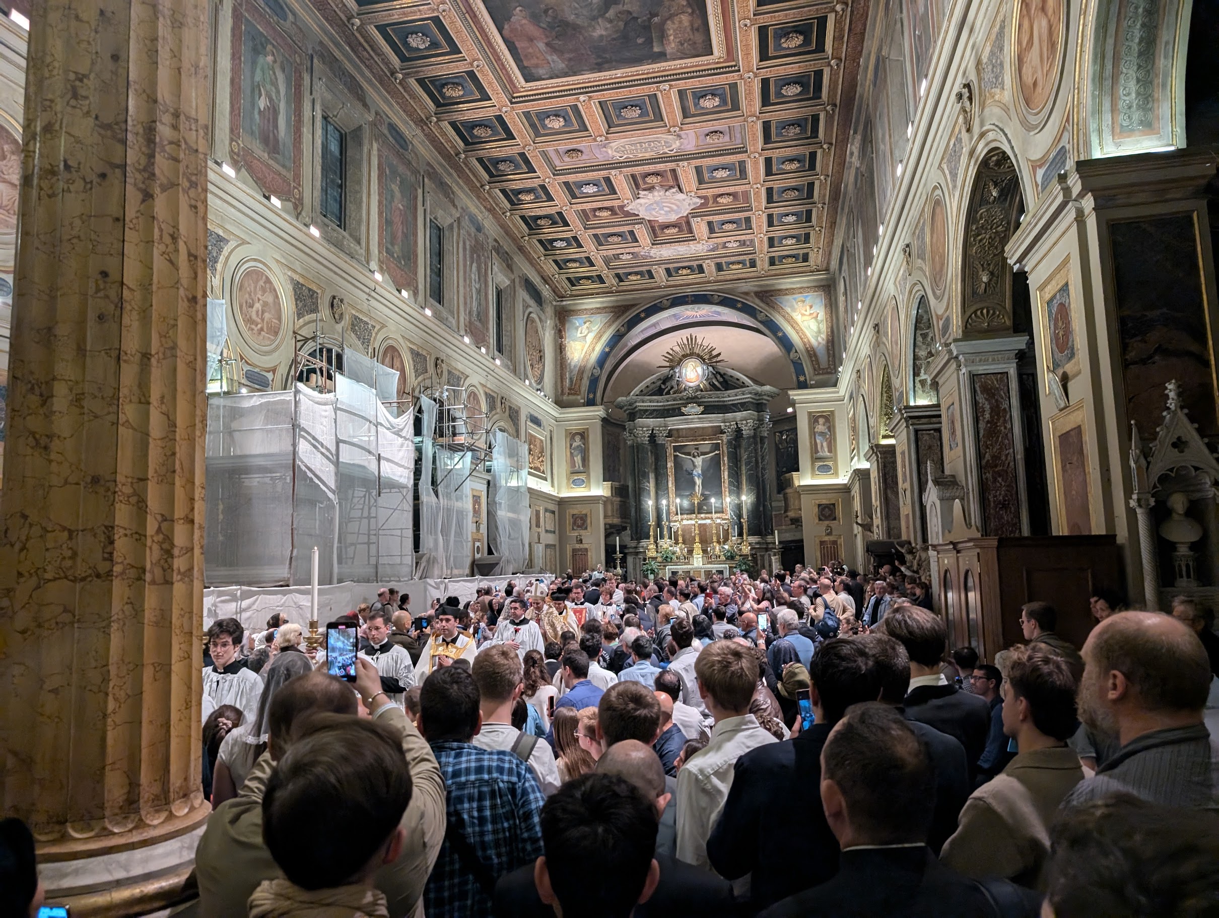 Then the pilgrims made their way to the Basilica of San Lorenzo in Lucina for pontifical Vespers presided over by Cardinal Matteo Zuppi and with Cardinal Raymond Leo Burke in attendance. The church was packed.