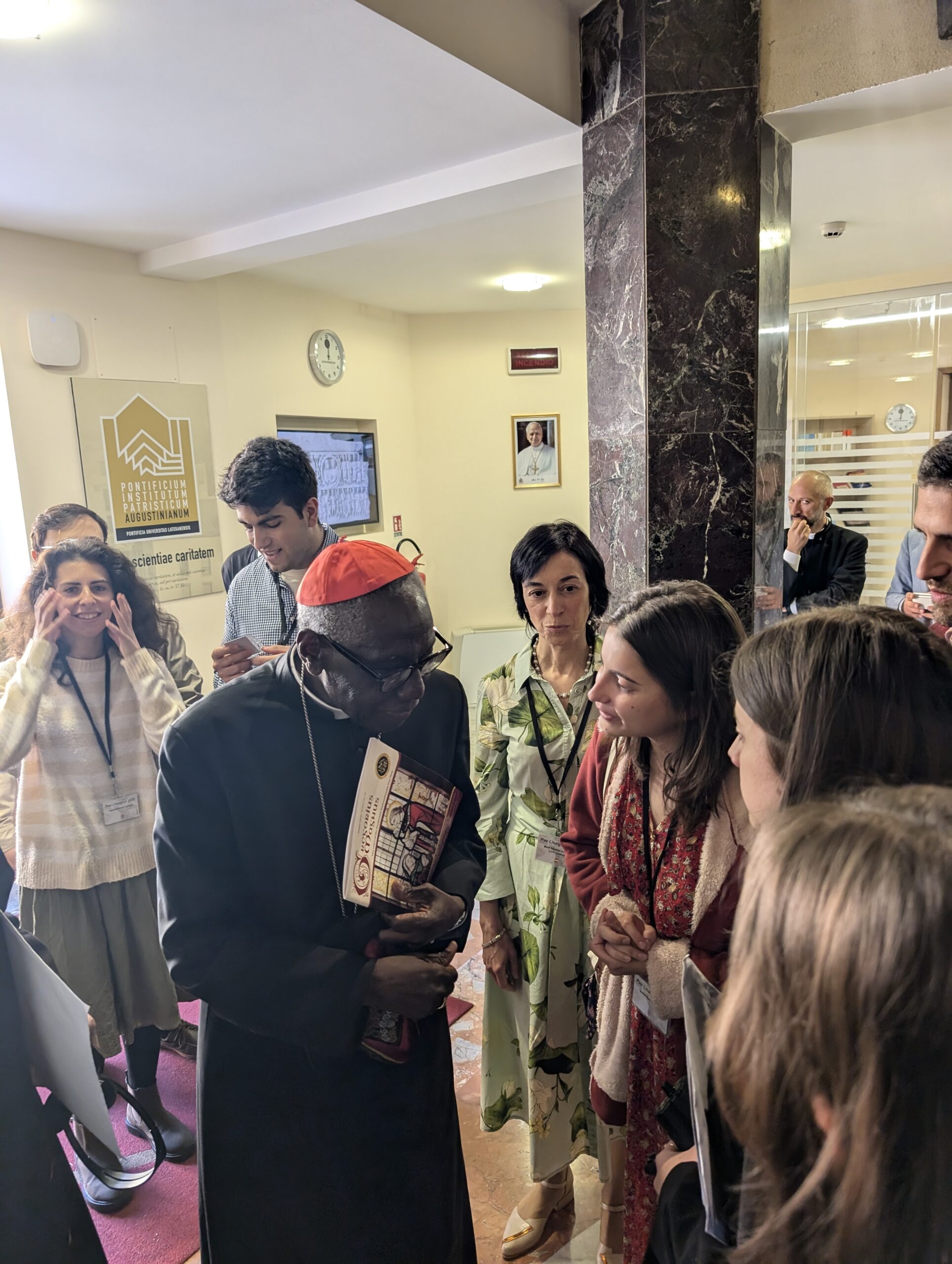 Outside the Augustinianum’s hall, Cardinal Robert Sarah appeared briefly to greet pilgrim. I managed to kiss his ring and receive his blessing. Rumour contends that his meeting with the Holy Father, in which he is said to have advocated on behalf of traditionalists’ pleas, bore fruit.