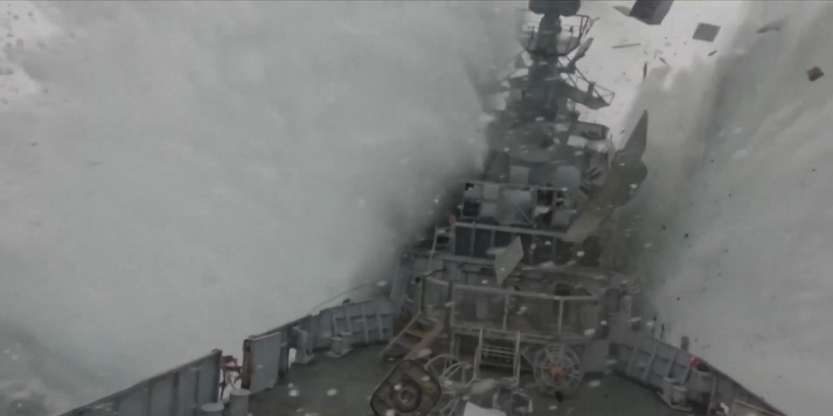 Video footage captured the frigate’s hull being thrust from the water before the crippled vessel broke in two.
