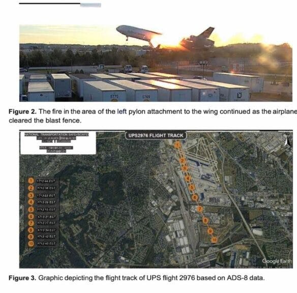 The National Transportation Safety Board released the images in its preliminary report on the crash, saying that investigators found “evidence of fatigue cracks in addition to areas of overstress failure” on parts near the engine on the left wing. The photos show the McDonnell Douglas MD-11’s left engine erupting in flames and breaking away from the wing as the UPS aircraft begins its takeoff.