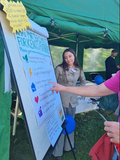 Kent Community Energy One community initiative currently available to investors through Ethex involves Kent Community Energy, shown here engaging with people at Tunbridge Wells Climate and Nature Fair, last month, about their community share, and its social and environmental impact