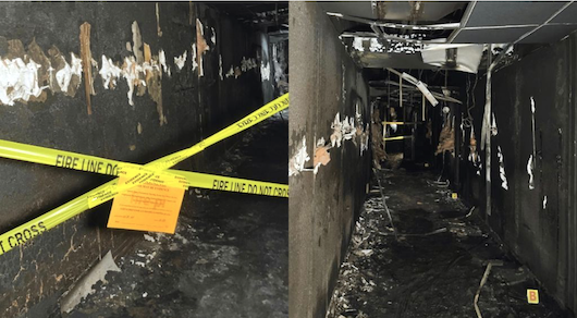 Our old building was substantially destroyed and to my knowledge has never been repaired. This is what our corridor looked like after the arson:
