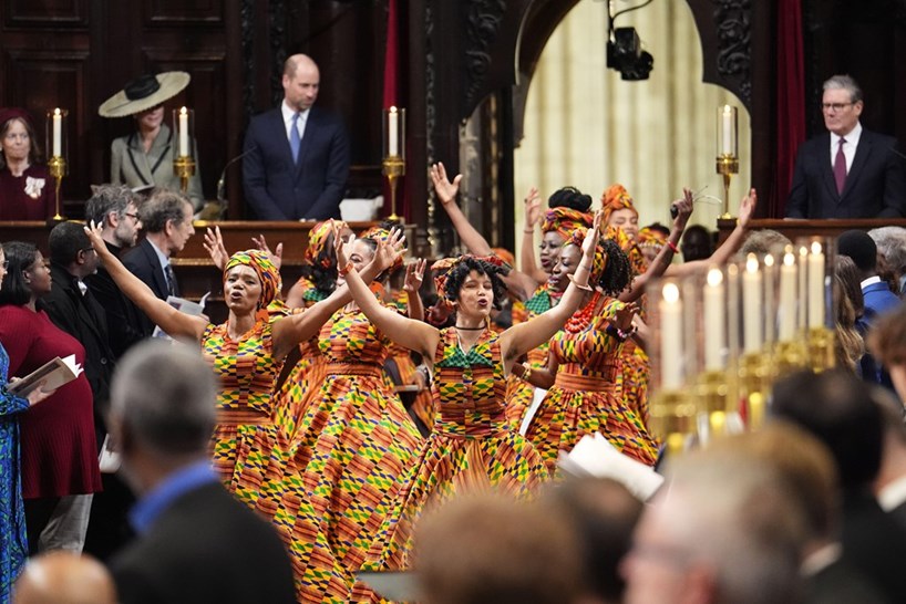 AlamyThe African Choir of Norfolk sing during the installation service in Canterbury Cathedral, on Wednesday. The Prince and Princess of Wales, and the Prime Minister, look on