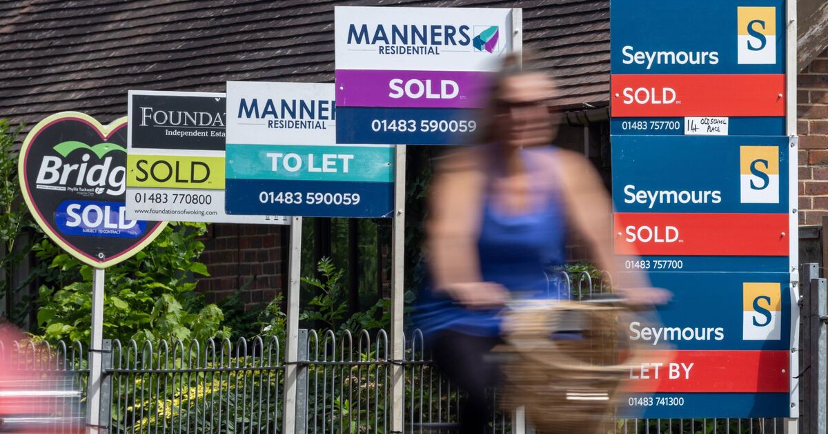 Estate agents 'Sold' and 'Let' signs outside residential properties in Woking, UK, on Monday, July 28, 2025. The number of UK ho