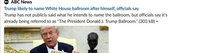 Here’s the latest example of the old media forces of Fourth Estate continuing to underwhelm with their lack of professionalism. They just keep flailing. ABC News blasted out a headline on social media based on unnamed quislings in the White House on Friday: “Trump likely to name White House ballroom after himself, officials say.” Luckily, the internet is forever: