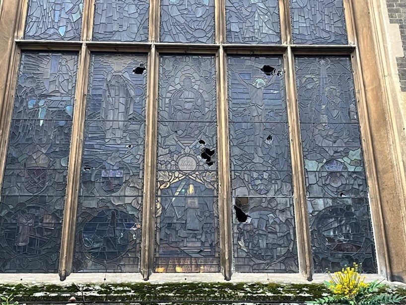 St James’s PaddingtonDamage done by vandals to the Te Deum window of St James’s, Sussex Gardens, in London