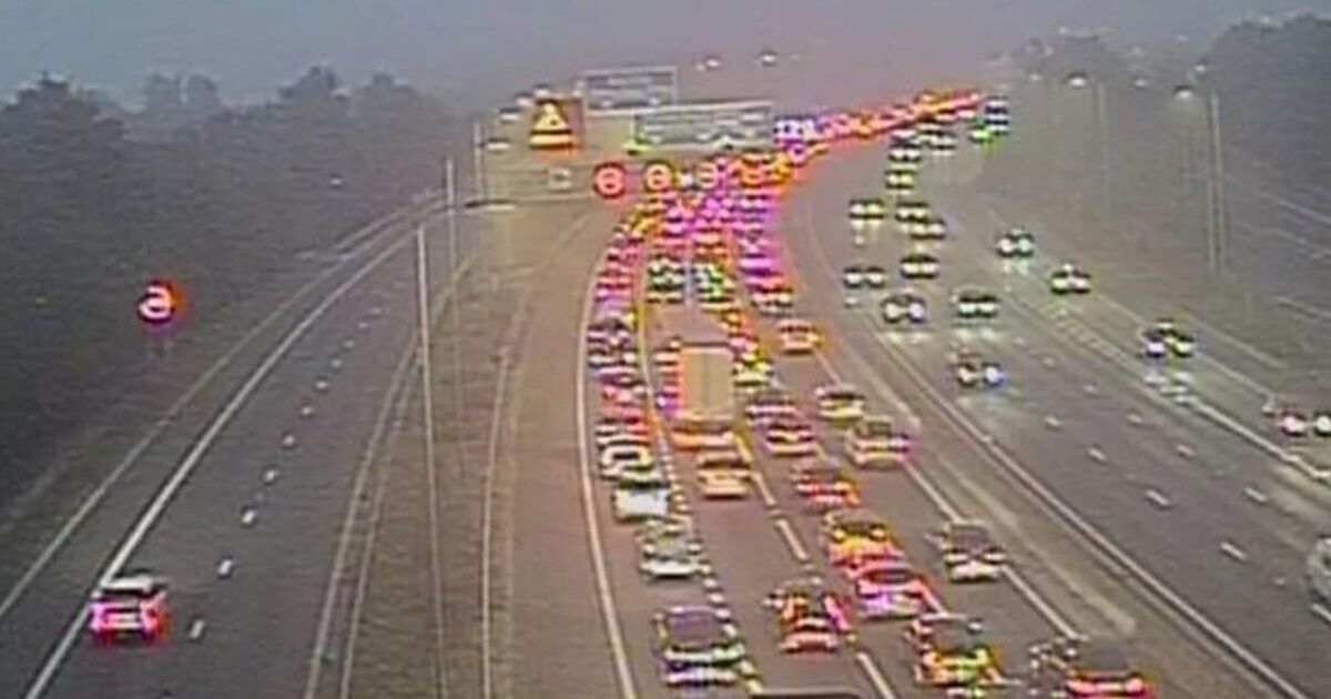 Both carriageways were blocked with “severe” delays on Sunday evening.