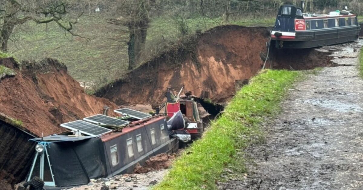 A major incident has been declared after a huge 50 metre ‘sinkhole’ swallowed a canal in Shropshire, with boats caught up in the terrifying incident. Dramatic images reveal a large breach in the canal in Whitchurch’s Chemistry area.
