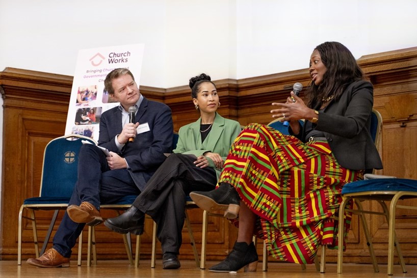 NEIL MASSEYJustin Brierley (left), Swarzy Shire (centre) and Miatta Fahnbulleh (right) speaking at the Church Works event