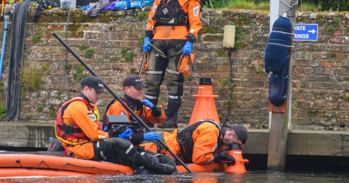 Pictures from the scene show a police team searching for evidence along the riverbank and in the Thames.