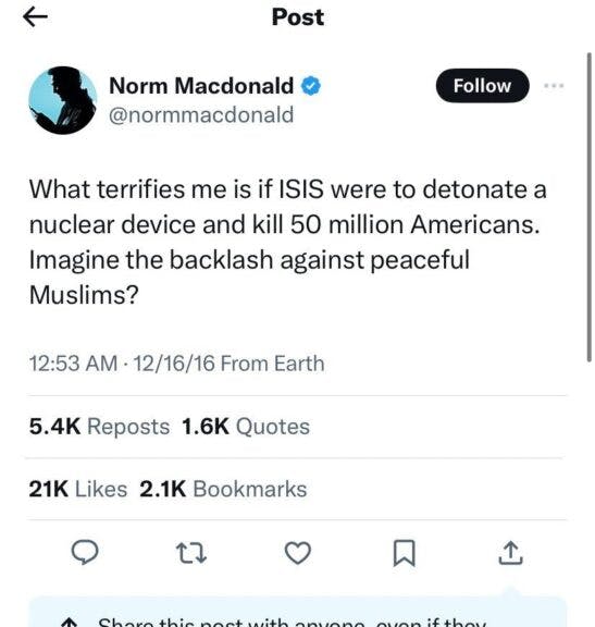 This is that Norm Macdonald tweet in real life.