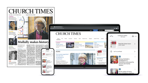 New to us? Sign up today to read up to four articles for free each month, plus receive the Church Times newsletter, and exclusive offers and events, straight to your inbox.